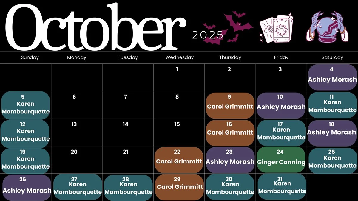 Ginger has been offering intuitive readings to the public for close to two years. She also offers astrology readings. Always a strong intuitive working with those in conflict with the law, her own experiences drew her to the mystical side of life. This is where she found the magic! Check out her Facebook Page: Dharma Astrology & Tarot. Her mentors are Karen Mombourquette for Tarot and Holly Poole for Astrology.